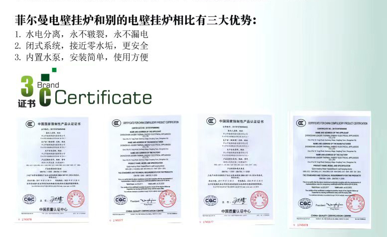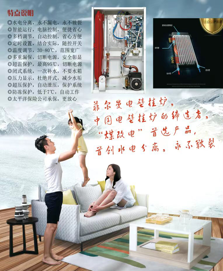 菲尔曼三维压铸铝即热式电锅炉,内置膨胀水箱和循环泵,在施工中无需安装水泵和膨胀水箱,增加了安装的便利性;闭式循环系统,循环不易结垢,能效更高。
