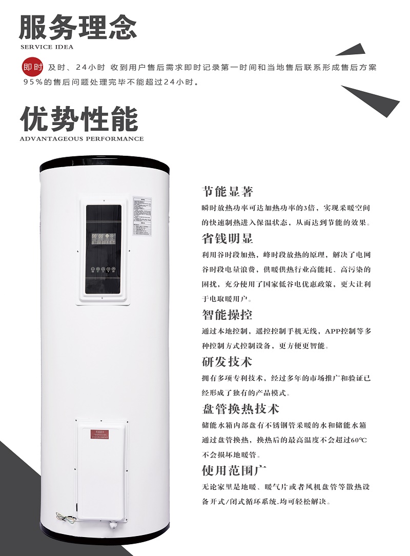 菲尔曼储能电锅炉的是在谷电时段储能电锅炉自动启动,利用低谷电的电能,将储能水箱内的水最高可加热到85℃,并保温保存。用户需要时,根据用户需求的热量大小及水箱内水温度,控制从水箱抽出的热水的量,逐步抽取水箱中的热量,达到使用廉价能源的目的。